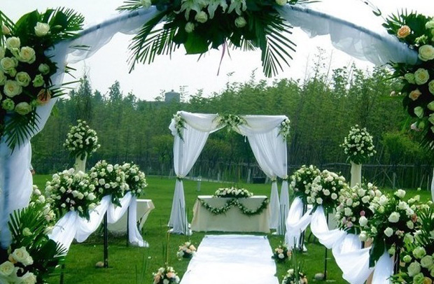 الصناعي الأخضر لجذب. تحت السماء الزرقاء، مكان فتح كل ما سبق وضع العشب الاصطناعي، ومن ثم الكثير من النباتات الزخرفية الطبيعية الجميلة على سجادة العشب الاصطناعي في منتصف مع ترتيب الزهور البيضاء يؤدي إلى وحدة اللغة، وكلا الجانبين مليئة الطاولات والكراسي، قاعة كاملة مع الأبيض والأخضر،