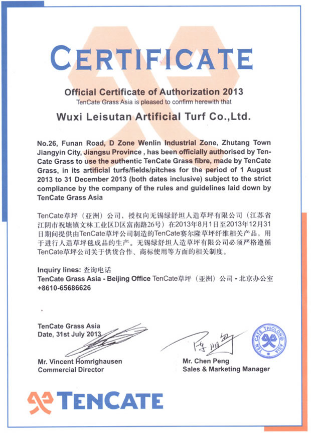 هولندا tencate الأسلاك المرخص العشب في الصين لا تملك إلا عدد قليل جدا، ومع ذلك، الأخضر هو واحد من والمصنعين Tencate مورد عالمي موحد مريحة من الإنتاج، والمعروض العالمي من ما يقرب من 100 مصنعين الكبيرة استخدام العشب الصناعي، لديه مستودع جمركي في شنغهاي لتسهيل آسيا المنطقة (بما في ذلك الصين واليابان وكوريا وجنوب شرق آسيا) يحتاج والمعايير المنسقة عالميا الجودة والإنتاج على نطاق واسع، وتوزيع وحدة وطنية غير متمايزة، والعملاء مرحبا بكم في النظام